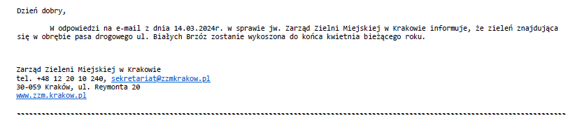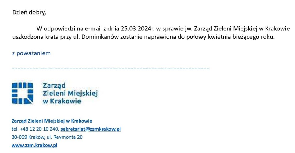 Zarząd Zieleni Miejskiej poinformował o przesadzeniu z trasy budowy Krakowskiego Szybkiego Tramwaju na Mistrzejowice na teren Parku Zaczarowanej Dorożki drzewa: klon pospolity kulisty Globosum. Jednocześnie poinformowano, że łącznie na teren ww. parku z inwestycji j.w. przesadzone zostały 4 drzewa.