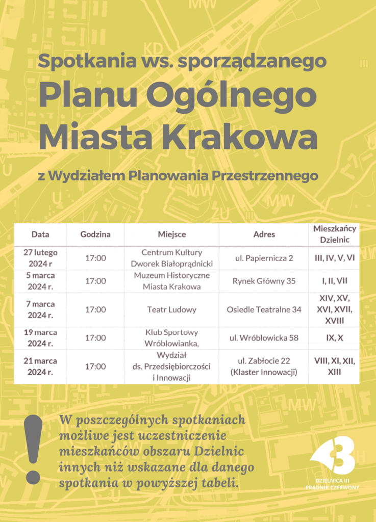 Zapraszam na sesję Rady Dzielnicy III Prądnik Czerwony, zaplanowaną na 14 października, podczas której będziemy procedować uchwałę mojego autorstwa w sprawie pozostawienia tymczasowo funkcjonującej nawrotki w kierunku wschodnim (w ciągu ulicy Lublańskiej) do czasu wybudowania docelowej nawrotki pod estakadą im. gen. T. Rozwadowskiego w Krakowie.