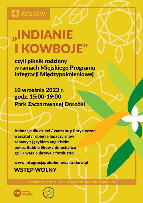 W najbliższą niedzielę (10 września) w Parku Zaczarowanej Dorożki odbędzie się piknik rodzinny „Indianie i Kowboje”, organizowany przez Centrum Młodzieży im. dr. H. Jordana w ramach Miejskiego Programu Integracji Międzypokoleniowej. Organizator zaprasza do uczestnictwa w animacjach związanych z indiańskimi i kowbojskimi tradycjami oraz do udziału w różnorodnych warsztatach i zabawach.